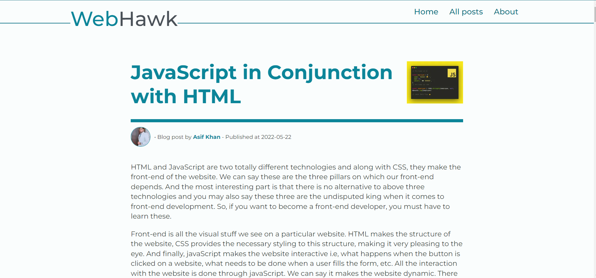 Blogs are written as Markdown which is basically like HTML so that the blogs are rendered dynamically.